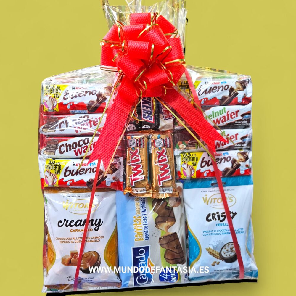 Bandeja de chocolate de 40×39 aproximadamente, algunos productos pueden variar pero serán sustituidos por uno similar .