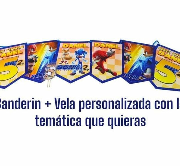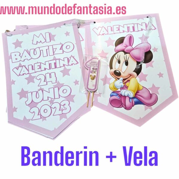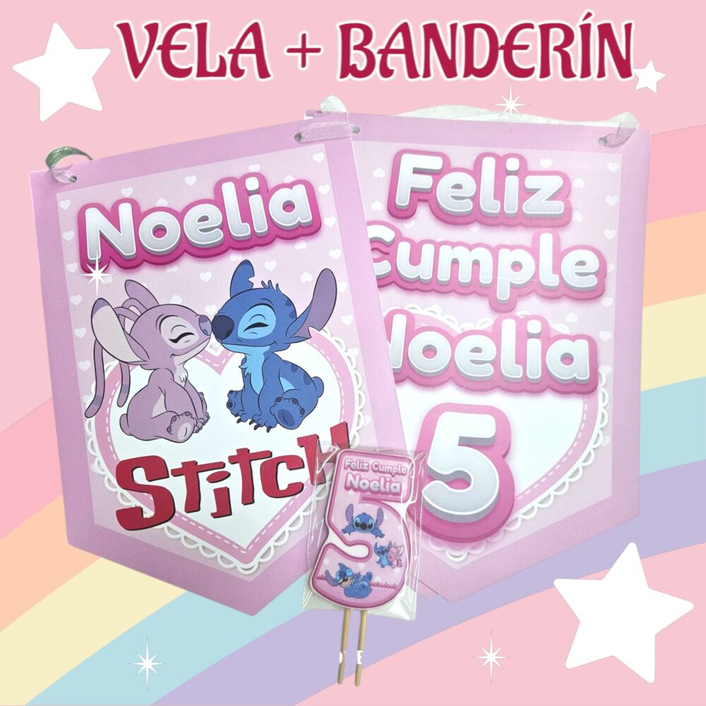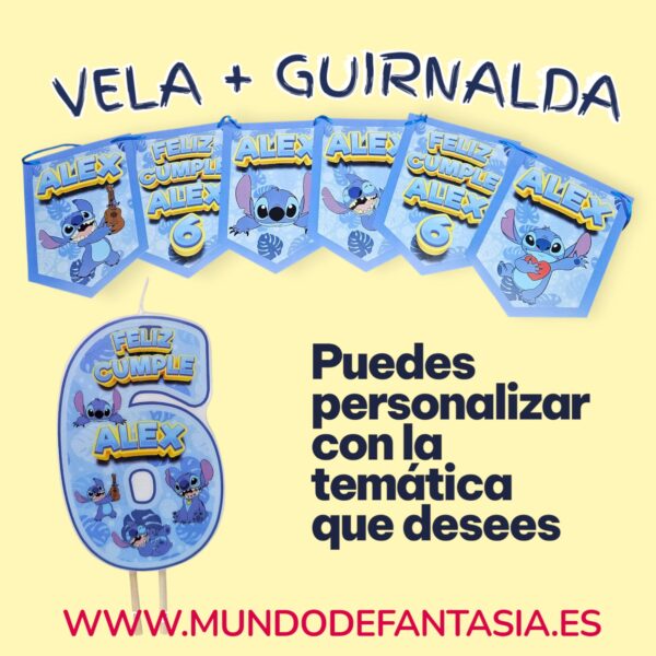 Pack fiesta de cumpleaños Vela y Banderín personalizados listo para montar en la mesa, para que tu misma prepares una mesa dulce original con la temática que quieras ideal para Bautizo, cumpleaños, Comuniones y cualquier Evento.
