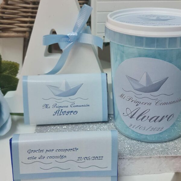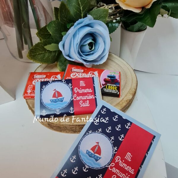 Etiqueta primera comunión chocolatinas de Nestlé personalizada con tu nombre y fecha de esta celebración tan importante, con este detalle tendrás un bonito recuerdo de unos de los días más importantes de nuestra infancia. No incluye la chocolatina