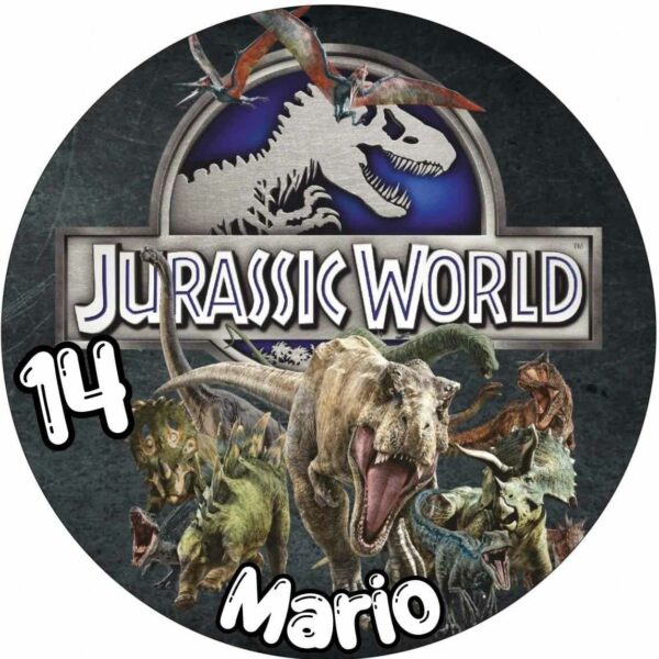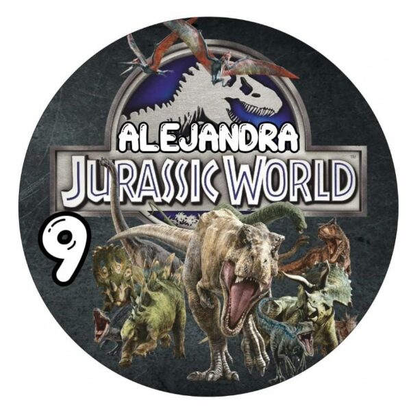 Oblea comestible decoración tartas Jurassic World. Se puede tardar 48 a 72 horas en personalizar el producto