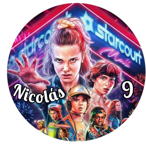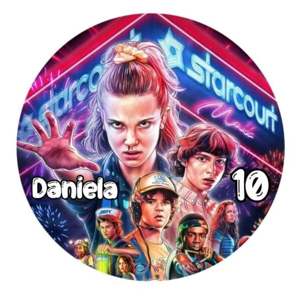 Oblea Stranger Things 20cm con nombre comestible para la decoración de tartas de cumpleaños .