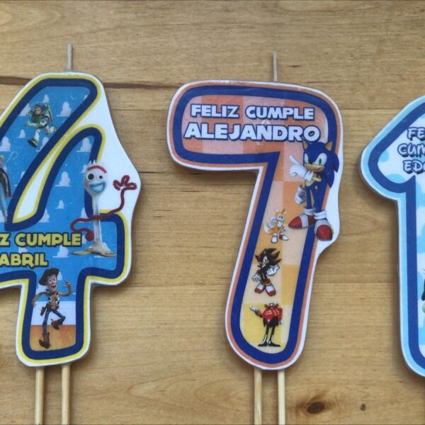Velas de cumpleaños elige tus personajes favoritos y personaliza con su nombre.