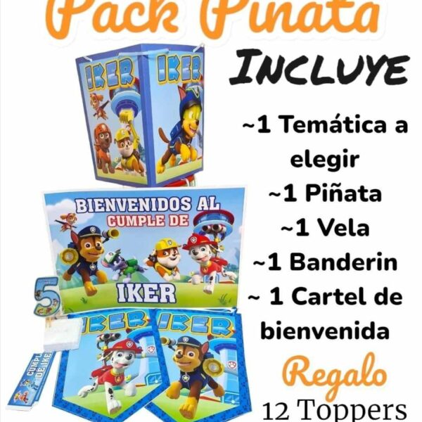 Pack Top Wing Fiesta Cumpleaños con vela, banderín, Cartel de bienvenida sobres para chuches para los invitados. Lo puedes pedir de la temática que quieras.