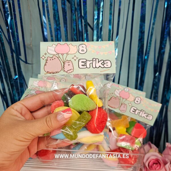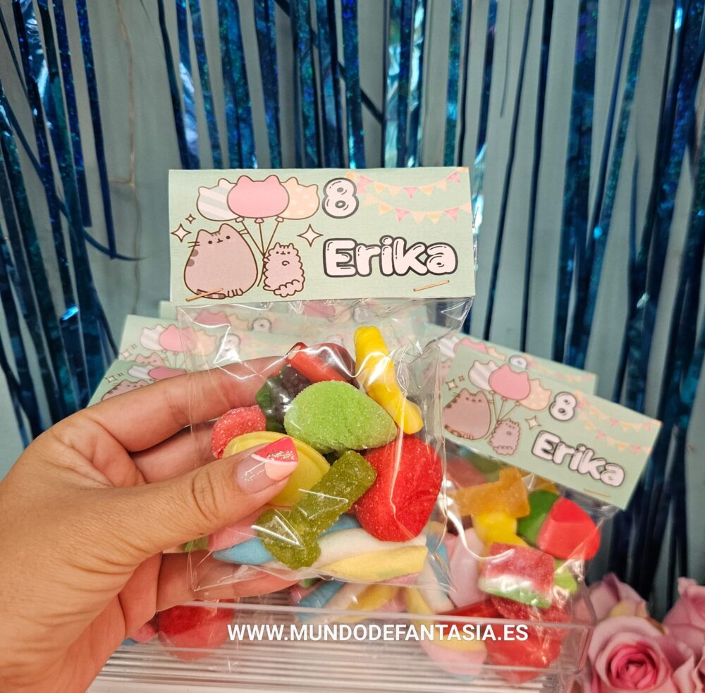 Bolsitas de gominolas variadas con etiqueta personalizable, según el Evento, para que tu fiesta sea la más original.