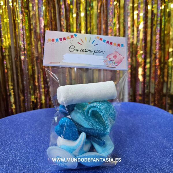 Bolsitas de gominolas variadas con etiqueta personalizable, según el Evento, para que tu fiesta sea la más original.
