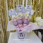 Paraguas de Chocolate personalizada listo para montar en la mesa, para que tu misma prepares una mesa dulce original con la temática que quieras ideal para Bautizo, cumpleaños, Comuniones y cualquier Evento.