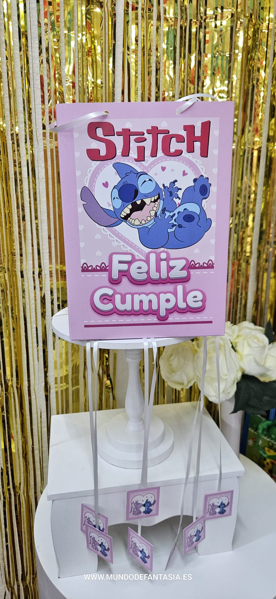 Piñata Stitch y Angel rosa