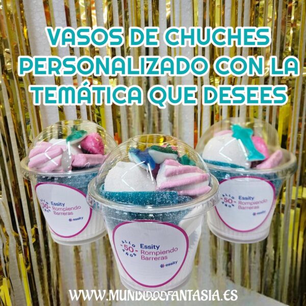Contiene: Una temática a elegir , 6 vasos de cuches y nubes rellenas con los colores de la temática a juego o bien multicolor lo que prefieras.