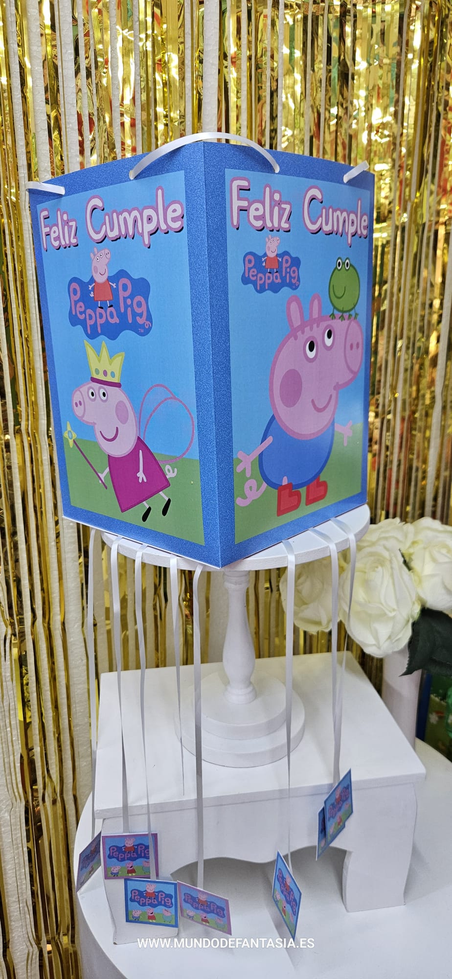 Piñata para la decoración de tus celebraciones, cumpleaños , comuniones, aniversarios, bautizos, Mesas dulces, etc. Diseño original , este modelo te lo envíanos en 24 horas a 48hs día laboral ,para pedidos realizados antes de las 13:00hs día laboralTiene una capacidad de relleno para 25 a 30 niños Medida; 28 x 20 x 20 cmNo personalizable, no incluye relleno.