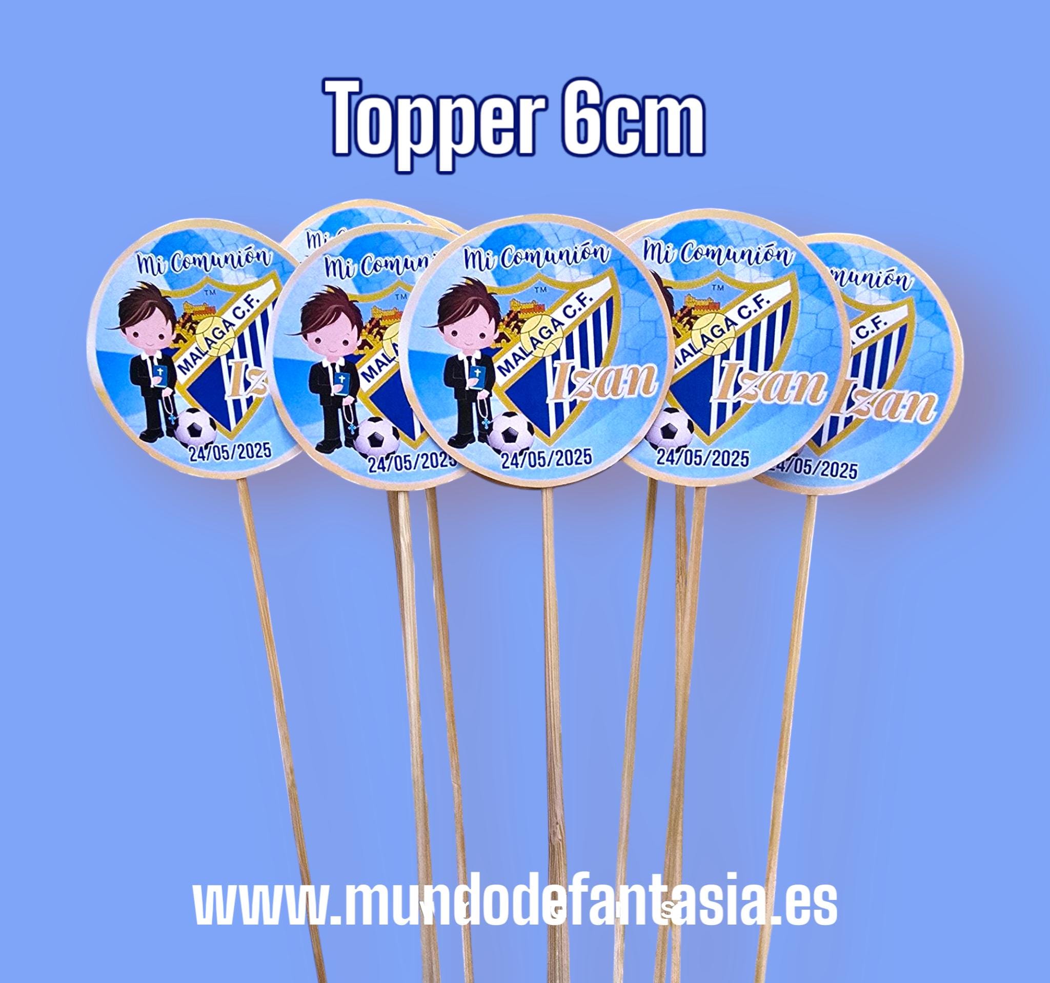 Topper circular de 6 cm con palillo largo de madera. Topper. Primera Comunión. Toppers personalizados para decorar los pastelitos, cupcakes, sandwichess o hacer brochetas.Vienen en paquete de 12 unidades.Disponemos de varios modelos y temáticas, puedes consultar los modelos disponibles. Se puede tardar 4-7 días en personalizar el productoPERSONALIZACIÓN: