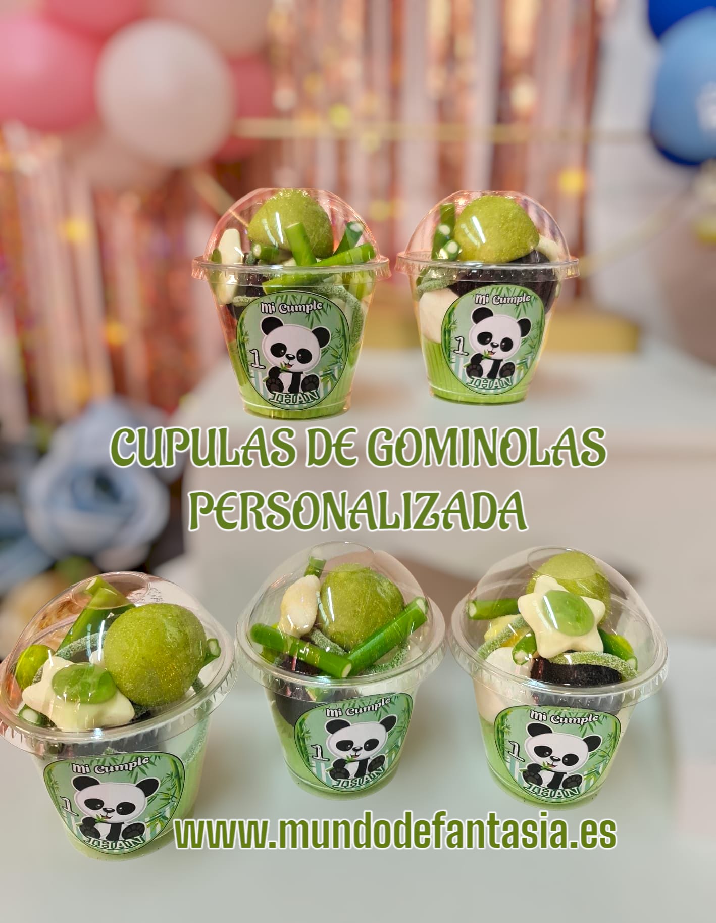 Vasitos de Chuches verde personalizados para cumpleaños en forma de cúpula con la temática que quieres. Listo para para que tu misma prepares una mesa dulce original con la temática que quieras ideal para Comuniones, cumpleaños o cualquier Evento.
